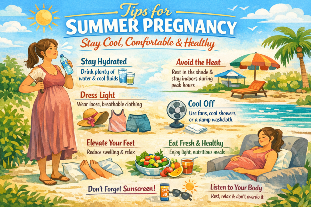 Summer pregnancy may come with its challenges, but with proper care and attention, it can be managed comfortably. Staying hydrated, eating healthy, avoiding excessive heat, and maintaining good hygiene are key to a safe pregnancy during the hot season.